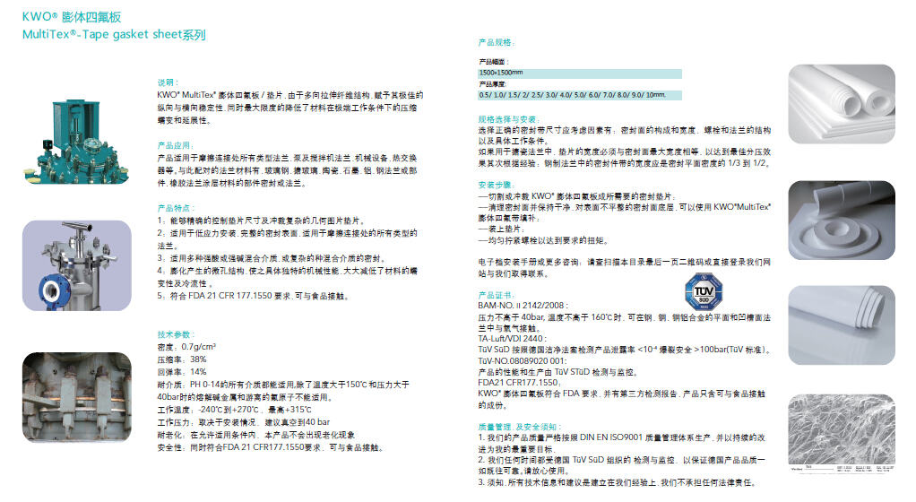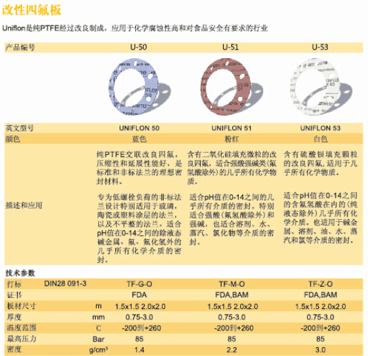 四氟墊:全稱聚四氟乙烯墊片國外又叫PTFE墊片或Teflon(鐵氟龍)墊片由聚四氟乙烯棒、管、板經(jīng)機械車削或裁切而成的平墊片、V形墊片、活塞環(huán)、球閥墊圈等具有耐腐蝕、抗老化和不導電等良好特性。 聚四氟乙烯pH值0-14(熔融的堿金屬和高溫、高壓下的氟除外)。其在-100℃~100℃之間能 夠具有良好的機械強度。